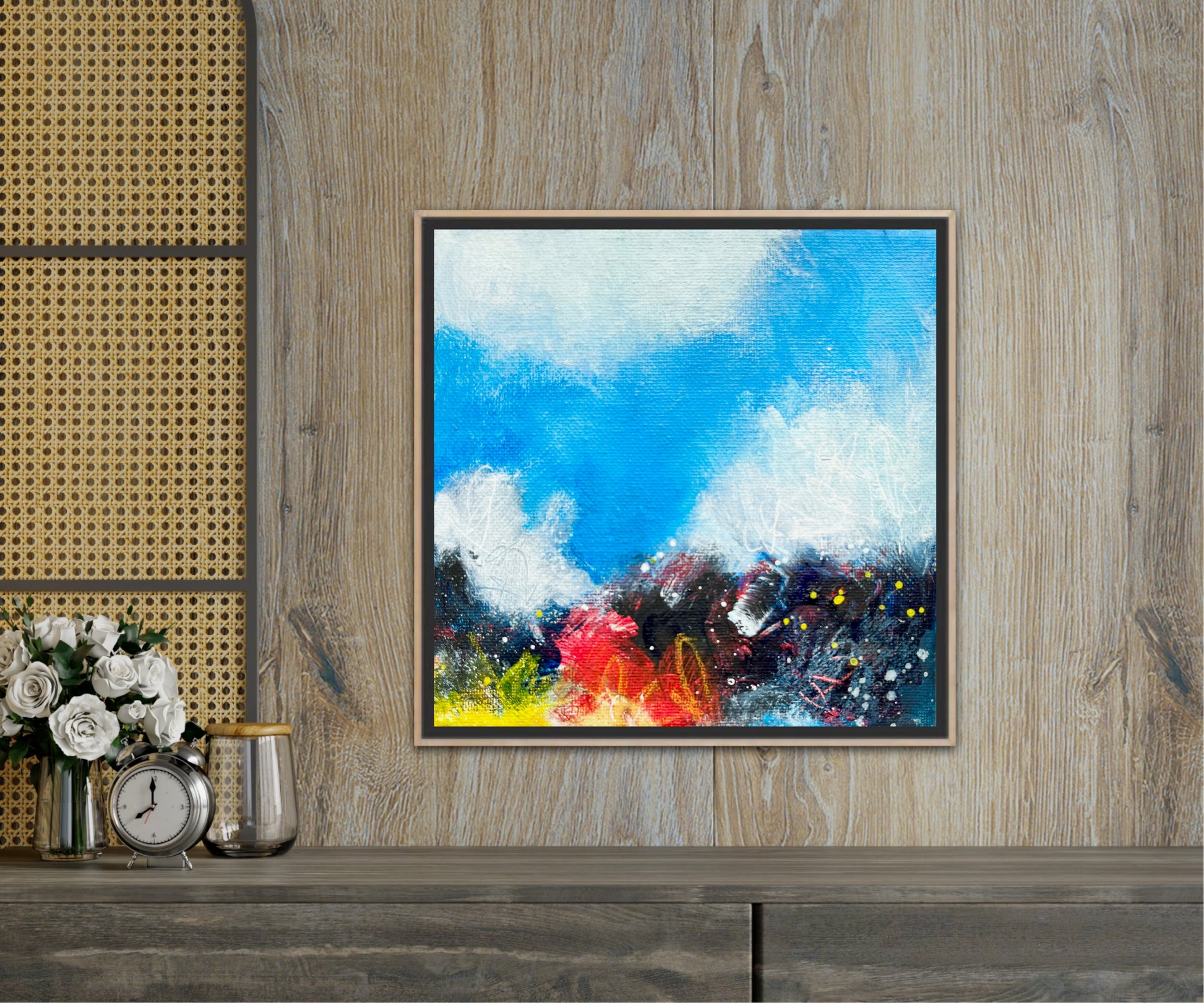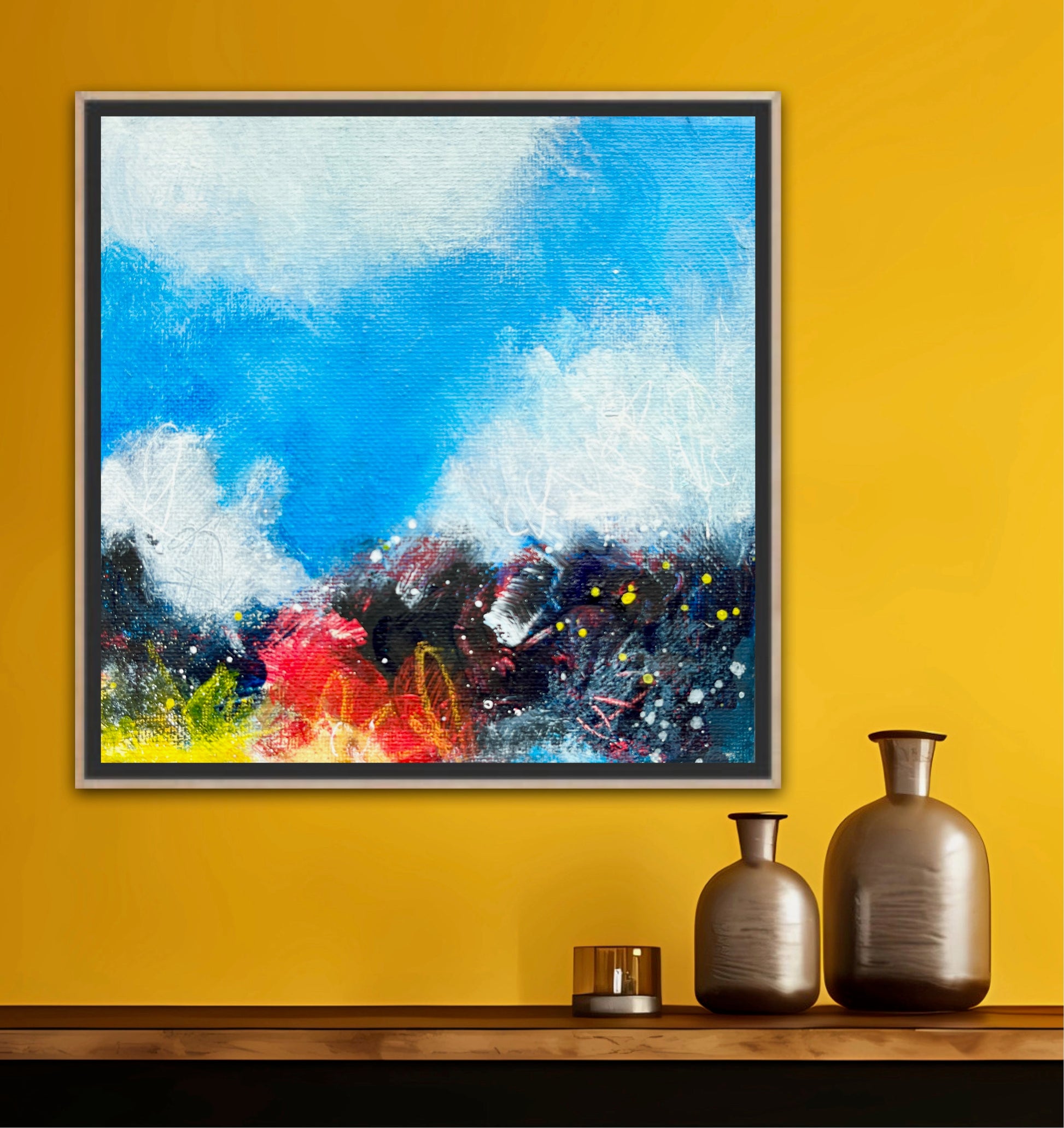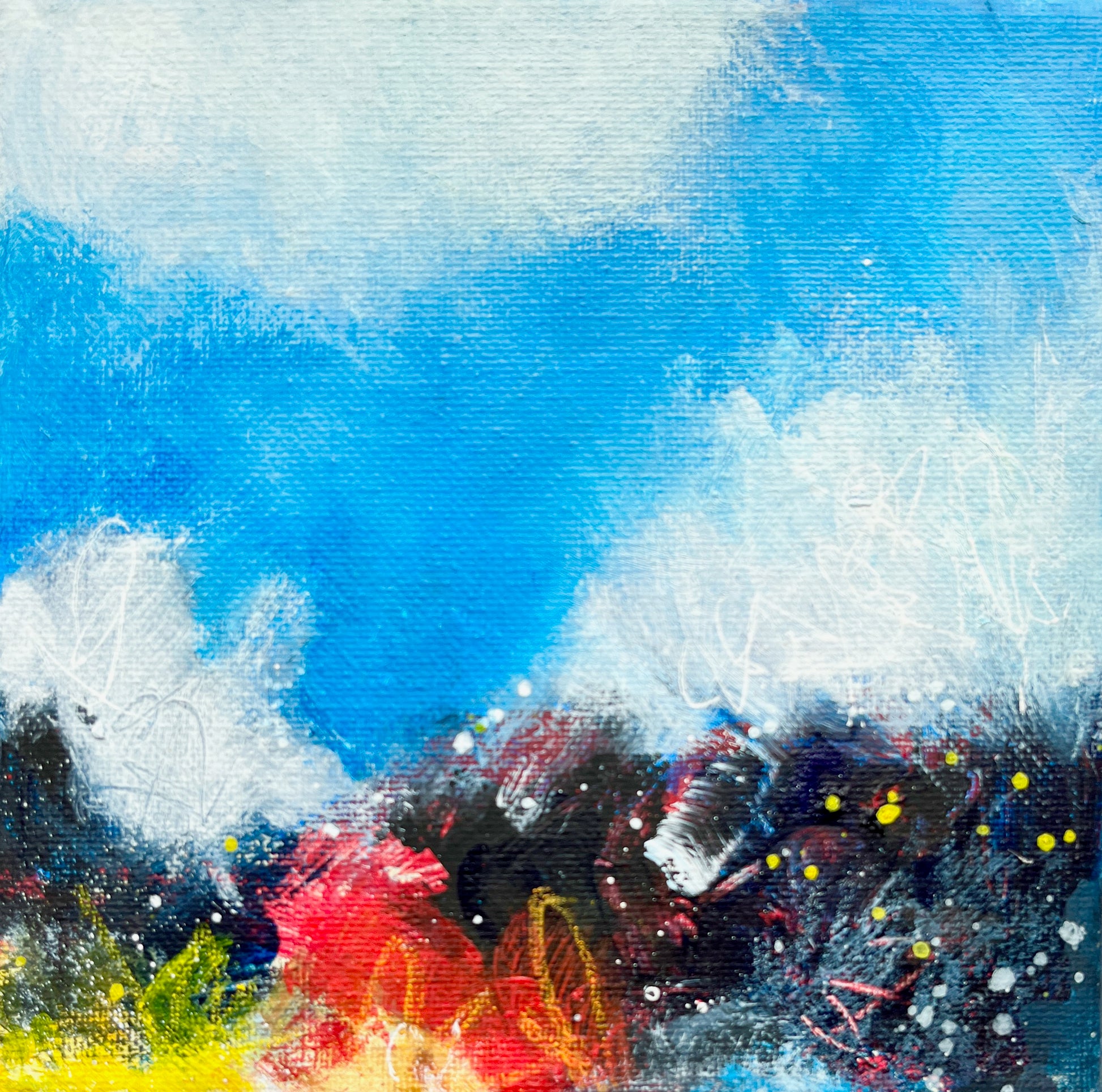 Colorful abstract landscape painting on canvas inspired by the Fall colors. Ready to frame and hang in any setting.